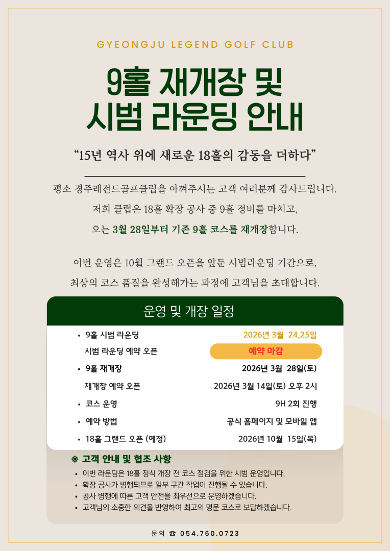9홀 재개장 및 시범라운딩 안내