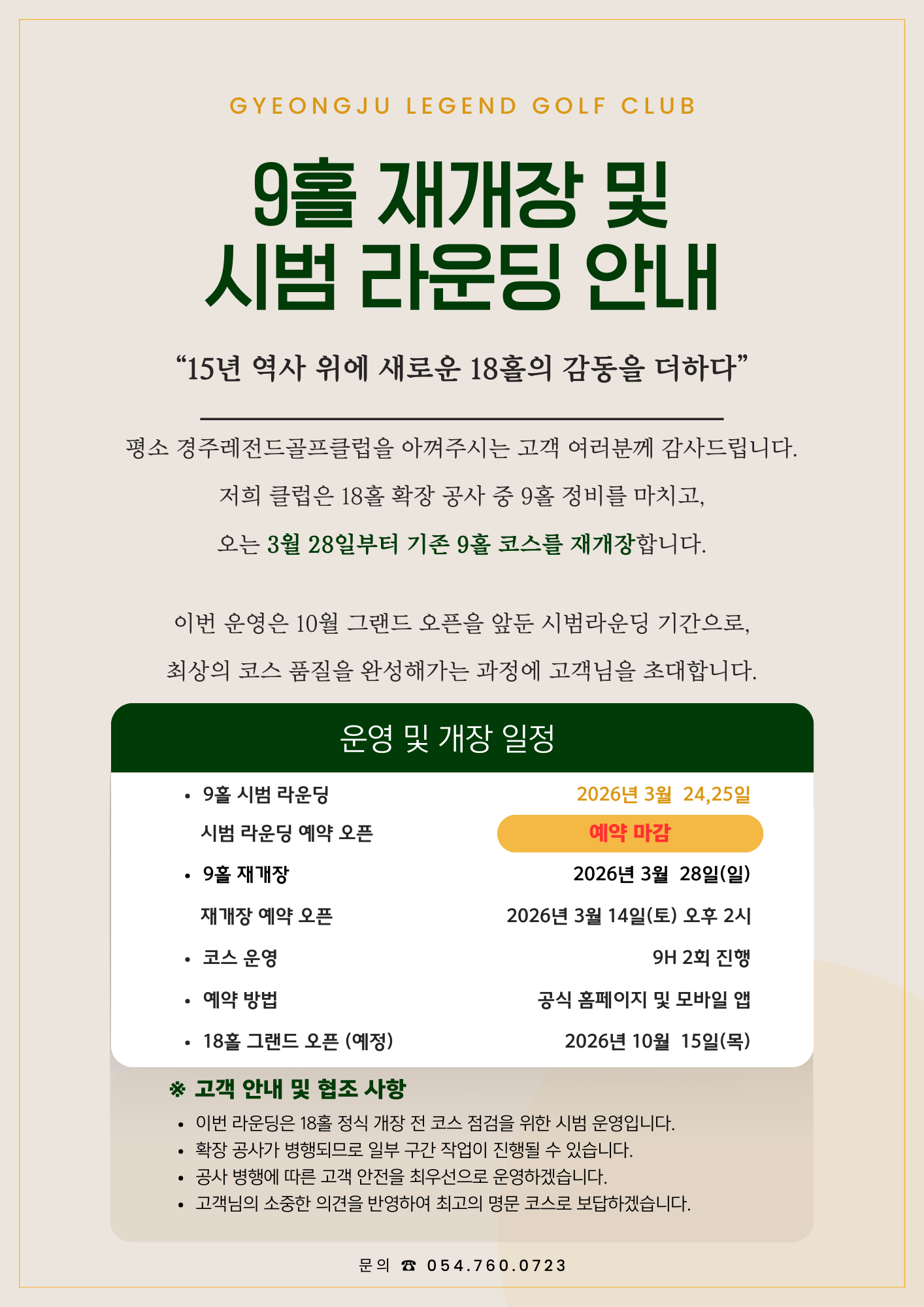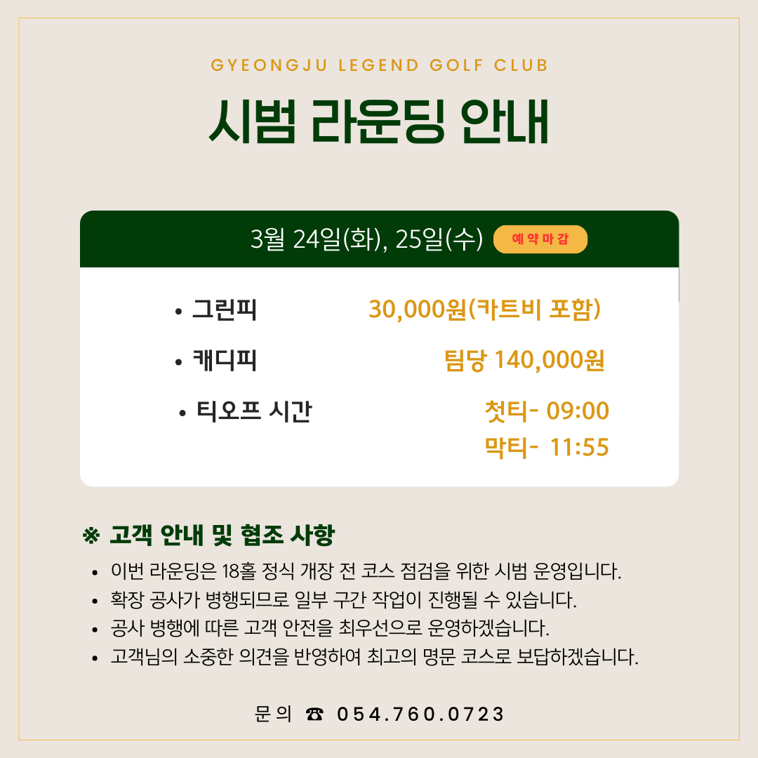 9홀 재개장 및 시범라운딩 안내